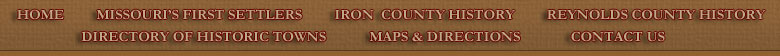 region for a Missouri History Vacation! Read about the fascinating history of Iron County and Reynolds County, MO. Discover the roll they played in the outcome of the Civil War in Missouri. View historic churches, antebellum homes, historic courthouses, turn of the century mercantile buildings, historic mills, and Fort Davidson State Historic Site. Many Missouri sites and historical landmarks are on the National Register of Historic Places. Come for a visit and observe a piece of the past where early Missouri settlements and farmsteads still stand. Let our country roads bring you home to a place you belong. Thank you for visiting our website and enjoy your tour of our Missouri Historic Towns and Landmarks! |